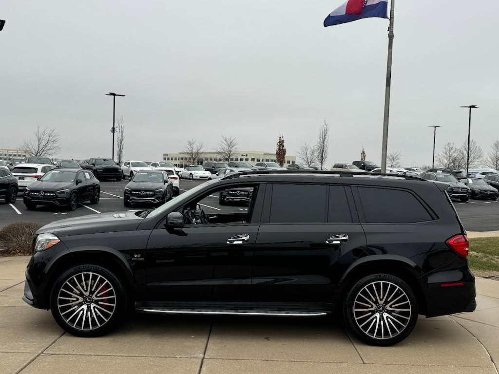 3rd row seats: split-bench, Accessory Chrome Package, Aluminum Trim, AMG® Night Styling Package, Bang & Olufsen Sound System, Chrome Door Handle Inserts, Exterior Parking Camera Rear, Hood Fin Covers, Illuminated entry, Navigation system: COMAND®, Power Liftgate, Power moonroof, Rear air conditioning, Rear Manual Sunshades, Sport steering wheel, Trailer Hitch, Wheels: 22 AMG® Multi-Spoke Black. 2017 Mercedes-Benz GLS GLS 63 AMG® 4D Sport Utility 4MATIC® 7G-TRONIC 7-Speed Automatic V8